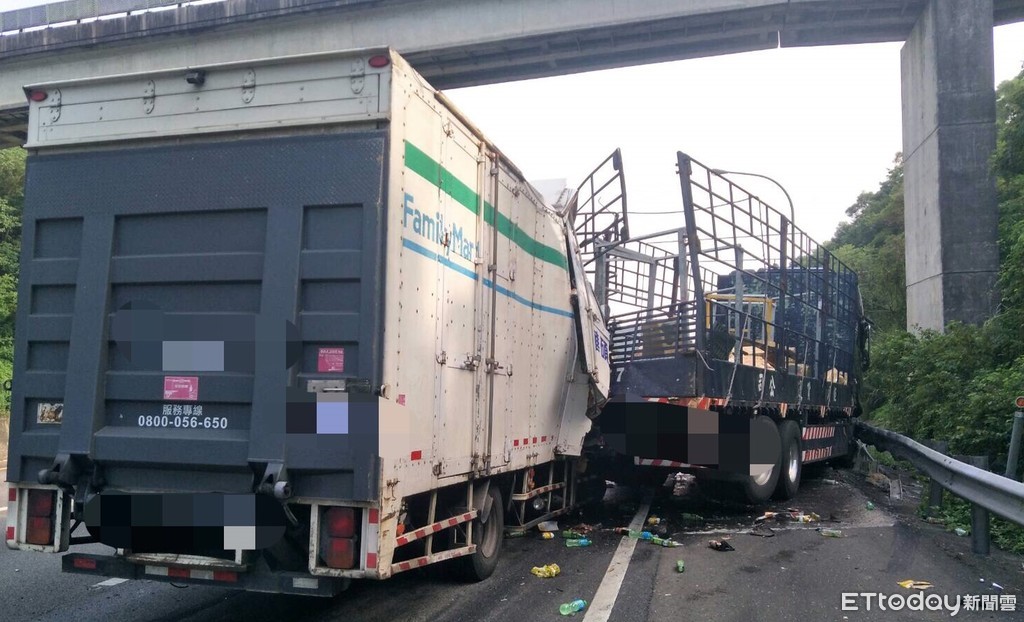 國道六隊指出,下午3時14分,國道三號南下74.2公里處,即桃園龍潭段至新竹關西路段之間,由48歲黃姓男子駕駛的大貨車,違規在路肩停車,且後車斗突出至外側車道,31歲張姓男子駕駛的物流大貨車,自後追撞違停大貨車,造成車頭嚴重毀損。