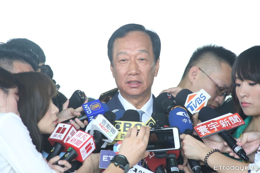 ▼郭台銘返台說明中東行 。(圖/記者屠惠剛攝)