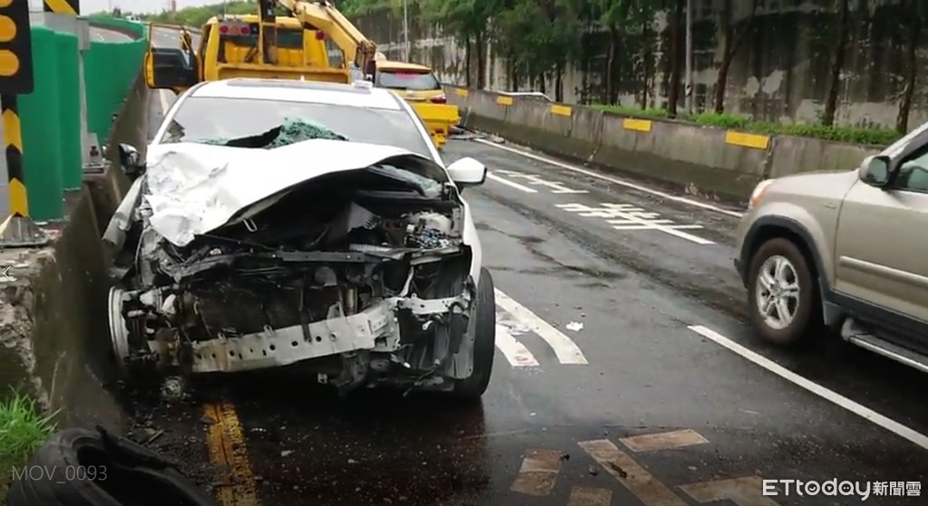警方調查,25歲的王姓男子,當時開車疑似精神不濟恍神,行經環河南路三段往中、永和閘道口時,整台車撞上分隔島當場翻滾180度,衝撞力道之大整個車輪就被撞飛,輪框也遭撞破。