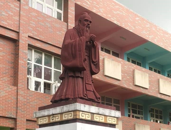 ▲ 校園裡的孔子雕像 。(圖/翻攝自爆廢公社)