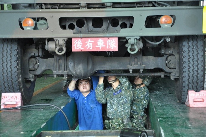 為達戰時充分結合民間資源,展現後勤支援能量,第五地區支援指揮部本周於戰備訓練月中,實施民物力徵用暨戰場搶修作業,徵用大甲地區民間汽車修配廠,協請該廠技工執行戰術輪車檢修與維保作業 ,藉此發揮戰時徵購徵用精神。