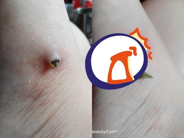 該名女網友在臉書社團「爆怨公社」PO文表示,她的右腳連續痛了近一個月,本以為是之前「從工程樓梯摔下來,也從山上坡道摔下來」所造成,沒想到近日發現右腳一處皮膚突然腫起,這才發現腳痛的主要原因。