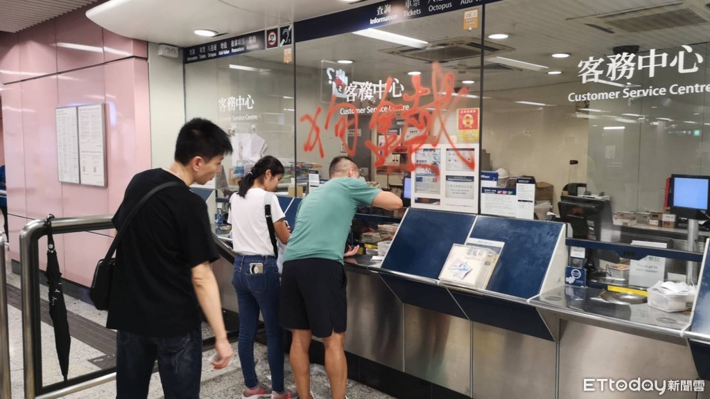 ▼有民眾在港鐵的售票機噴漆。(圖/記者黃彥傑攝)