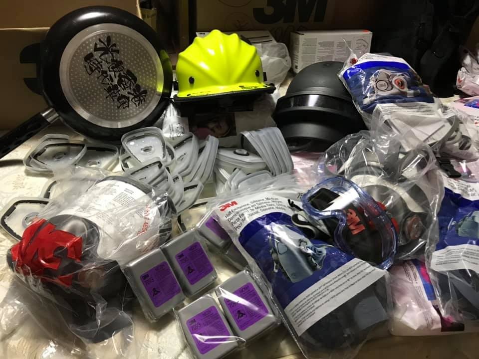 ▲涉事店鋪有販售防毒面具、頭盔等裝備 。(圖/翻攝自「國難五金」臉書)