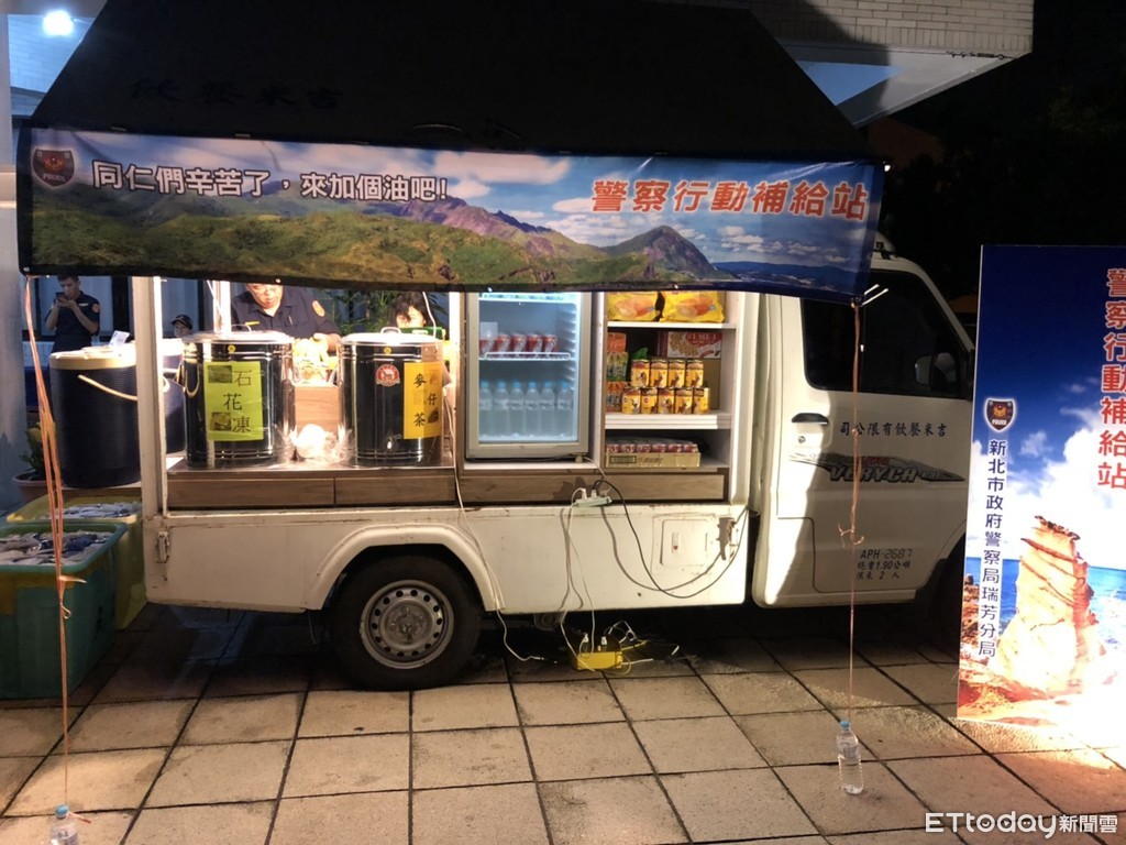 瑞芳警分局準備了運動飲料、沙士、石花凍、仙草等多種飲料以及餅乾、香蕉、防曬乳等食品及補給品,並派同仁騎乘機車化身小蜜蜂,親自送到每位執勤的同僚手上,不僅如此,瑞芳警分局還貼心為服勤警犬準備糧食補給,避免長時間服勤無法充分補給體力。