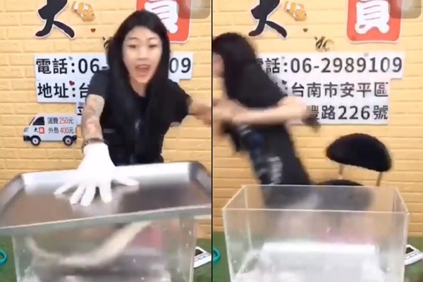 依據影片畫面,兇猛的鰻魚在量體重時,奮力掙脫了箱子,尾巴甚至在直播主面前不斷甩動,讓直播主嚇到落跑,放聲狂飆海豚音,儘管老闆立刻來幫忙,但仍無法成功馴服這條鰻魚,讓原本要走回鏡頭前的正妹又尖叫落跑,老闆本人也嚇的手舞足蹈,場面相當逗趣。