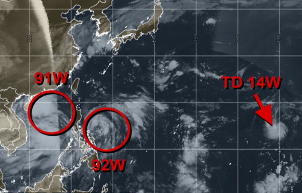 天氣風險指出,其中最需要關注的是熱帶低壓92W,它持續向西北行進,接近台灣東南方海面,在周三、四最接近台灣,目前預報是以通過台灣東方海面北上的機會較高,也不排除會更靠近一些,這要看太平洋高壓和另一顆熱帶低壓91W的相互牽引作用,局勢有點複雜。