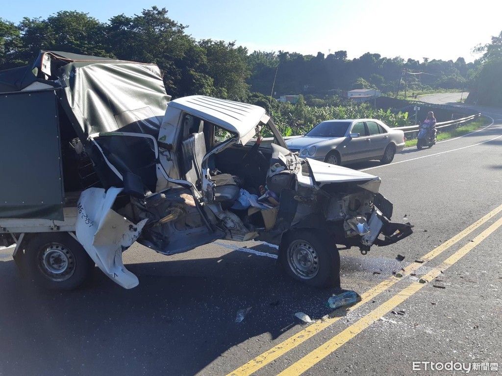 據了解,2日上午7時多,57歲顏姓男子駕駛小貨車,行經台20乙線5.5公里附近,不知何故追撞前方載運工程機具的卡車,由於撞擊力道大,造成小貨車車頭全毀,令人怵目驚心。