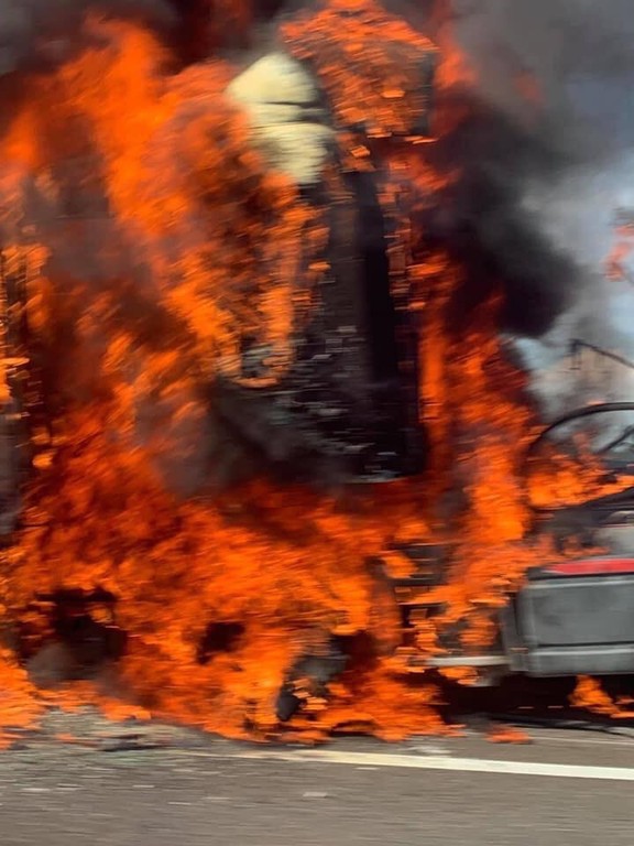 警消獲報國道有火燒車意外,立即到場進行灌救,火勢很快被撲滅,但聯結車車頭仍因高溫扭曲變形。在現場找尋傷者及駕駛時,卻發現聯結車駕駛早已離開現場。目前正由國道三號第五警察大隊竹田分隊調閱監視器,找尋駕駛釐清事故原因。