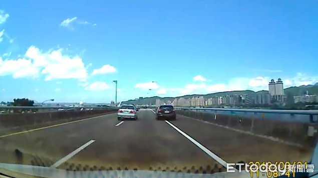 上個月(8月)31日上午11時13分,陳姓男子(46歲)開著銀色轎車載著曾姓母親(69歲)從汐止要到林口,行經國道1號汐止五股高架道南向20.6公里堤頂路段,正要從內側變換車道到外側時,一部黑色轎車違規行駛路肩,突然連方向燈都沒打就要切回外側車道。