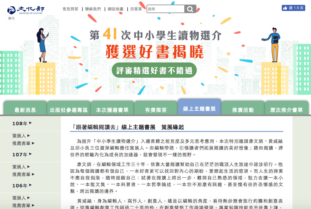 「第41次中小學生讀物選介」線上書展網址:https://book.moc.gov.tw