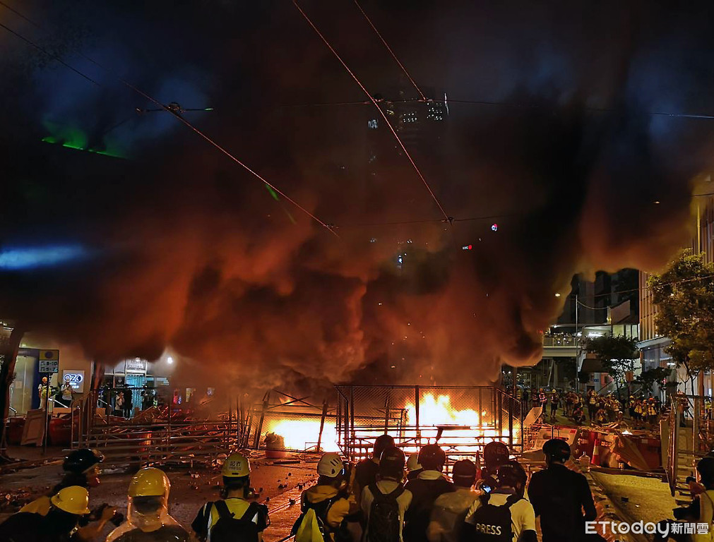 ▲香港0831反送中,示威者縱火焚燒路障與雜物。(圖/記者黃彥傑攝)