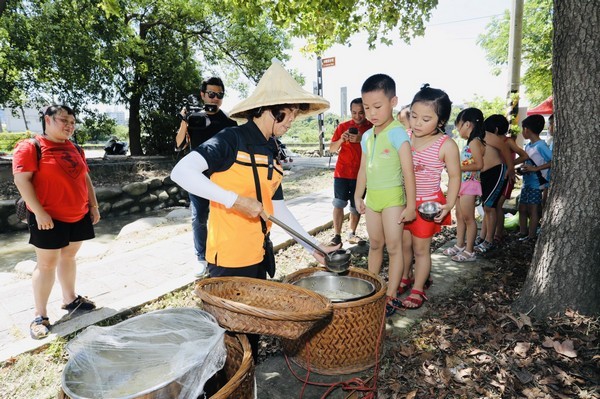 大溪月眉休閒農業發展協會理事長李汪根3日表示,早年農村社會,三、五孩童相招一同到翻土後的田間玩泥巴大戰,玩髒了就跳到圳溝「摸蜆仔兼洗褲」,看到家人挑著「點心擔」,一步步往田間而來,這時孩童們如同插上翅膀一樣,飛奔前去,急於與放下田間農事準備用點心的大人,一起分享。