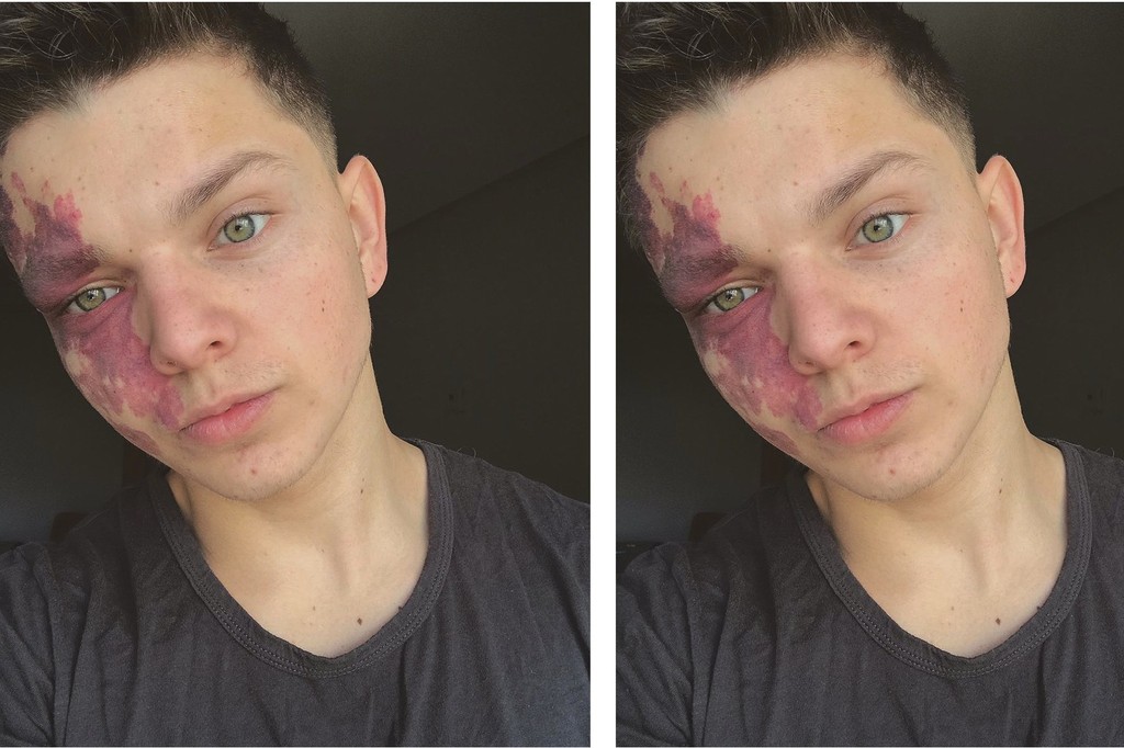 這名20歲的少年臉上有一片明顯的紅色胎記,他傳訊息給佛里曼並提到,很希望大神可以幫幫忙,「我天生就有這個胎記,已經跟著我20年了,你能不能把我的臉變成同一種顏色,讓我看起來好看一點,我知道你會幫忙的,謝謝了」。