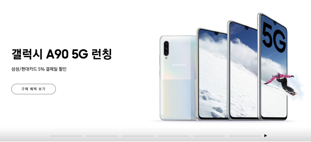 Galaxy A90 5G機背玻璃採用獨特的幾何圖案設計,共推出黑與白兩款經典顏色供選購,將於9月4日起在韓國開賣,售價為韓圜899,800元(約台幣23,000元),並將陸續在全球各地上市。而台灣可能得等到整體5G環境建置完成後,此款手機才有可能上市。