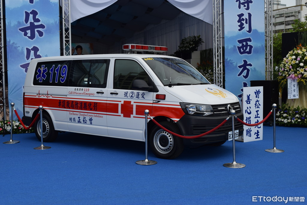 彰化縣員林警分局警友會辦事處主任曾崧正日前辭世,家屬為圓滿生前遺願,購置救護車2輛捐贈彰化縣消防局,4日上午告別式中辦理捐贈儀式,由彰化縣長王惠美帶領消防局警義消同仁前往公祭會場致哀、接受捐贈並致贈感謝狀,表揚善行義舉,場面莊嚴隆重。