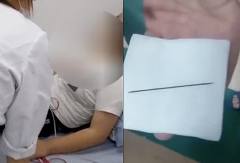 ▲醫生從王南心臟裡取出一根7公分的針。(圖/翻攝自看看新聞,下同)