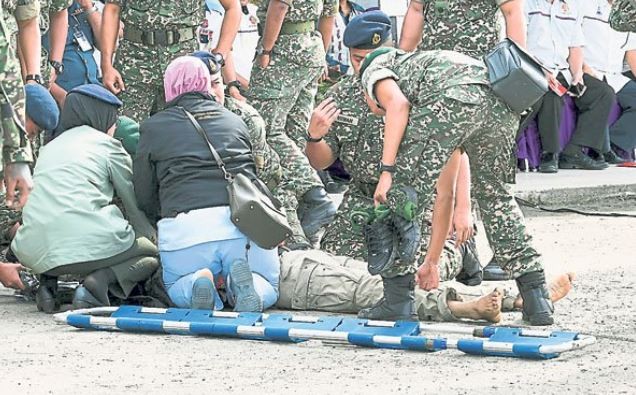假死變真死!馬來西亞一名36歲的陸軍少校莫哈莫查希,因為在實彈操演示範時飾演「反派角色」,沒想到竟遭豬隊友開槍反擊時射偏,直接射中沒有受防彈衣保護的背部,最後緊急送往醫院搶救還是宣告不治。