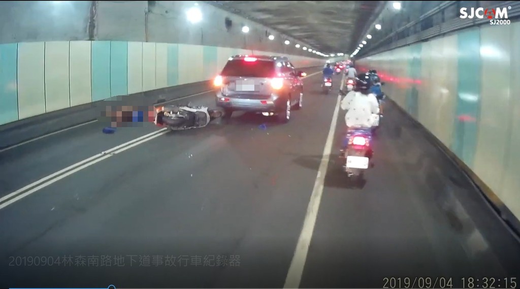 警方調查,44歲的宋姓休旅車駕駛,4日晚上6時許,行駛在林森南路地下道時,突然感覺後方一陣撞擊,下車察看發現32歲的林姓機車騎士連人帶車倒臥一旁。