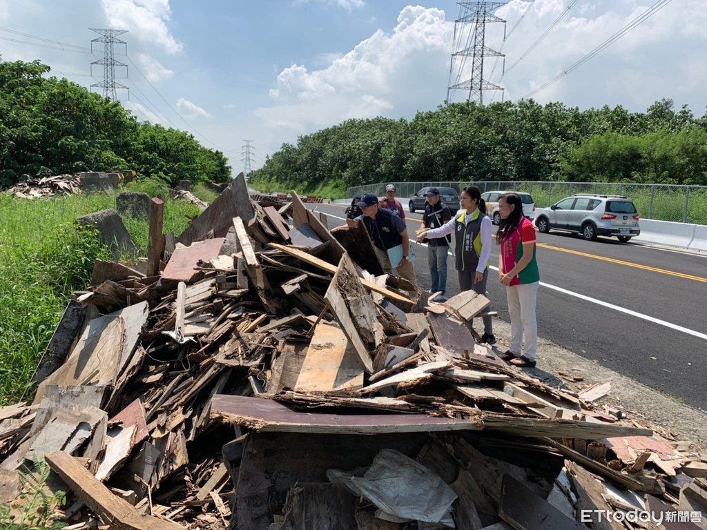 賴清美上午趕緊與立委參選人陳秀寶聯絡環保局等單位到場,稽查科長林三能表示,現場稽查後以廢木和廢瀝青為主,已經循線找路口監視器,趕緊將不肖業者揪出,而該區土地為第三河川管理局,釐清權責後,會儘速到場清除。