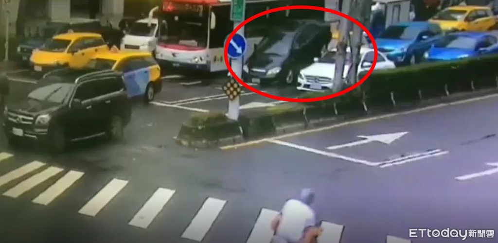 警方調查,年約70歲的陳姓車主,5日上午11時許開車行經北市承德路、庫倫街口時,先撞上前方58歲陳姓運將的小黃,因太緊張整台車加速倒退、又撞上後方由60歲邱姓運將駕駛的小黃。
