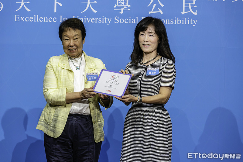 ▲天下雜誌2019年首次舉辦「天下USR大學公民評選」,成大在評選中榮登龍頭,成大蘇慧貞校長(右)代表成大親自領獎。(圖/記者林悅翻攝,下同)