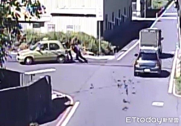 ▲車主感謝協助推車的資深巡佐黃子鋆是「老當益壯」。(圖/大園警分局提供)