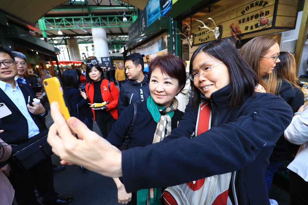 盧秀燕在英國波羅市場導覽經理莎拉巴特勒(Sara Butler)陪同下參訪市場,她說,市府重視庶民經濟,包括市場經濟、夜市經濟等都需好好發展,該市場千年以來就是傳統市場,如今已變成觀光、旅遊價值,不僅商品具有特色,整體環境也相當乾淨,其中有幾家商店,提撥部分收入當作教育訓練,供婦女或年輕人學習,讓居民學得一技之長後,回歸市場設攤,是市場發揮公益功能的表現。