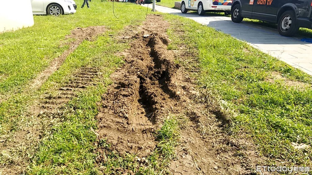 ▲幸福水漾公園草皮遭破壞。(圖/記者葉南州攝)