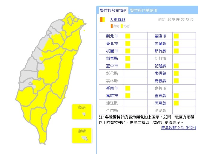 大雨特報範圍: