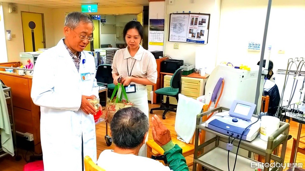▲▼台東醫院長樊聖(左)走遍每一間綜合病房,向病患或家屬親手送上綠豆椪月餅,祝福他們中秋節愉快。(圖/台東醫院提供,下同)