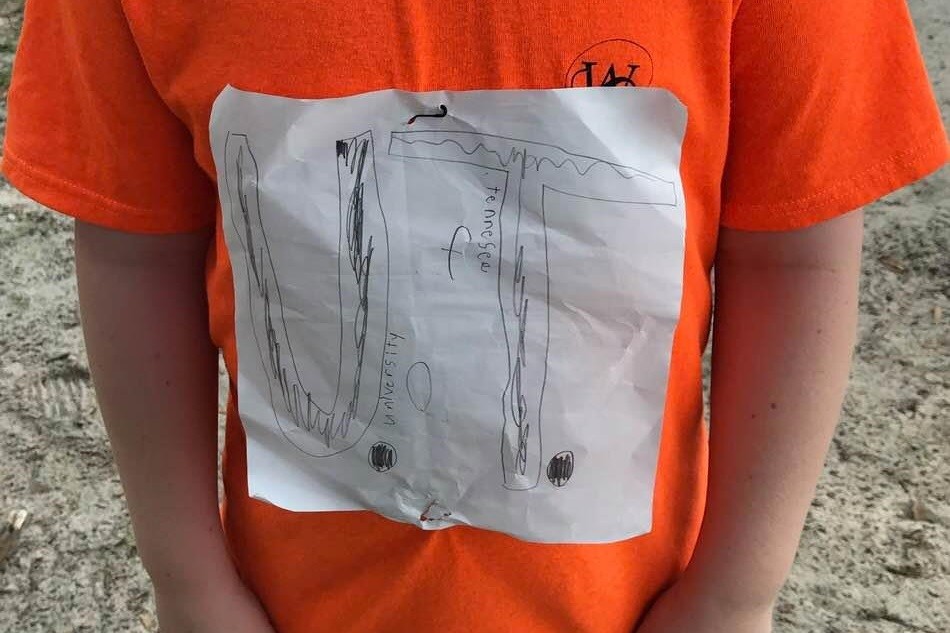 阿爾塔蒙特小學(Altamonte Elementary School )的老師史妮德(Laura Snyder)在臉書上PO出這個故事,這名男童因為喜歡田納西州大學大表的橘色,但是沒有相關的紀念服飾,於是自己動手做,他在白紙上寫下大學的縮寫「 U.T.」,加上大學校徽,接著把它釘在橘色的衣服上,並且非常興奮地穿去學校,秀給老師同學看。