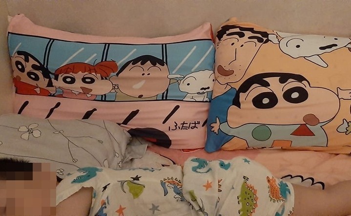 ▲媽媽讓兒子用蠟筆小新枕頭套,爸爸對此有些意見。(圖/翻攝自爆怨公社)