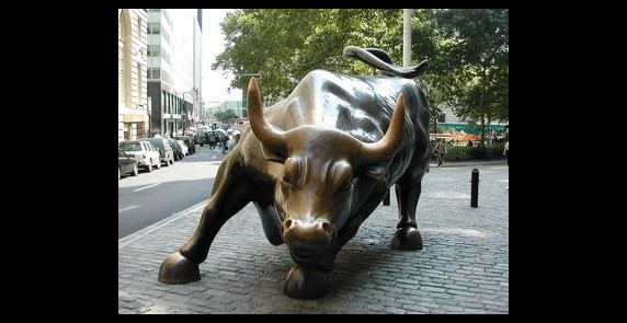 「華爾街銅牛」是位於美國紐約曼哈頓區鮑林格林公園的一座銅質公牛塑像,由義大利藝術家莫迪卡(Arturo Di Modica)創作的街頭游擊藝術。莫迪卡在1989年私自將銅牛擺放在紐約證交所外面,作為送給美國的禮物,鼓勵民眾堅強面對困境,此後銅牛就一直留在原地,現在已成為華爾街知名地標,更是華爾街金融區的「吉祥物」。