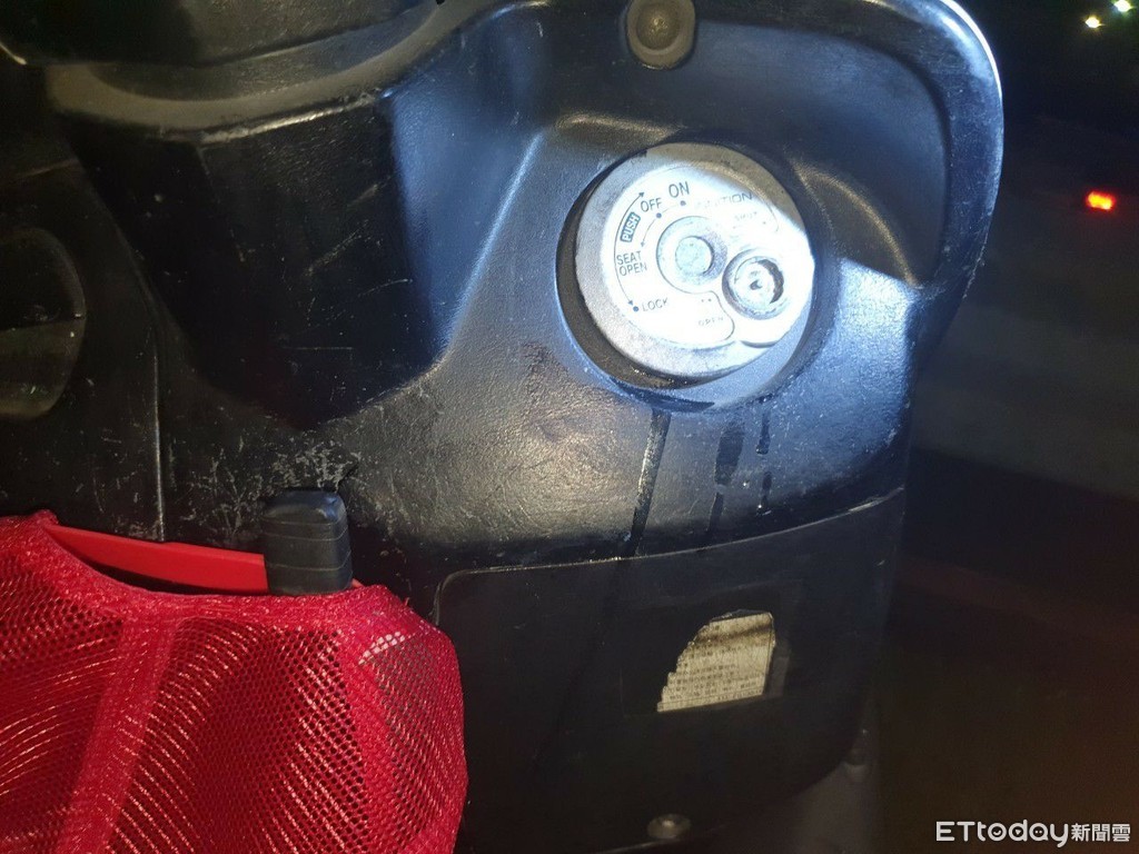 ▲韓粉參加韓國瑜造勢活動違停機車,遭人惡意用三秒膠封著鑰匙孔 。(圖/記者陳以昇翻攝,下同)