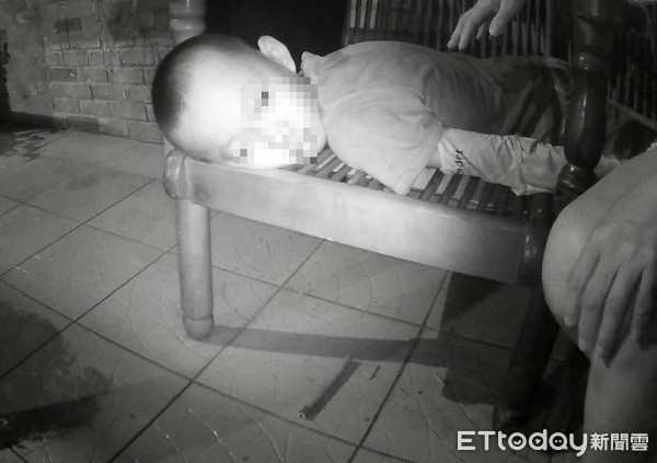 ▲身障幼童深夜迷途躺臥路旁椅子。(圖/龍潭警分局提供)
