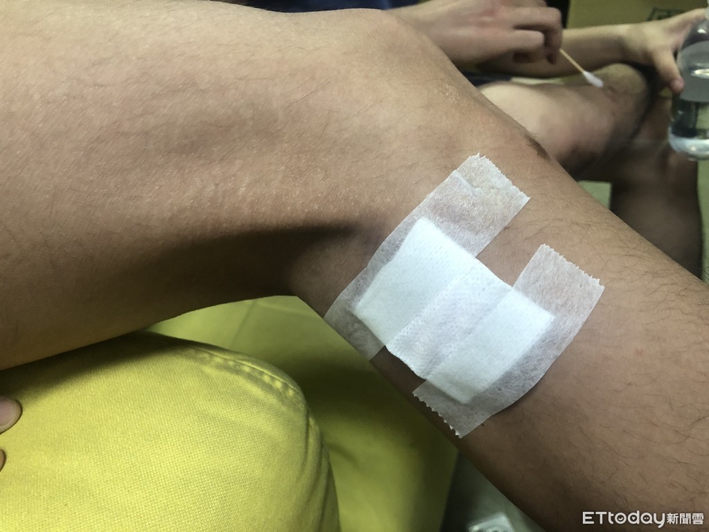 ▲新莊警分局楊姓警員在追捕過程中摔傷 。(圖/記者陳以昇翻攝)