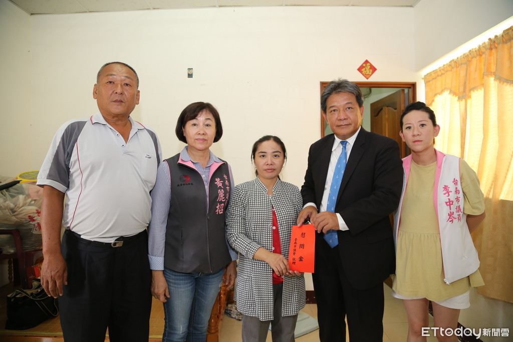 以打零工為生的許姓民眾,因頸椎手術暫時癱瘓在床,至今仍住院,無法工作,台南市議會郭信良議長及議員黃麗招、李中岑等人,9月9日下午前往慰問家屬,並致贈慰問金5萬元,希望幫助家屬度過難關。