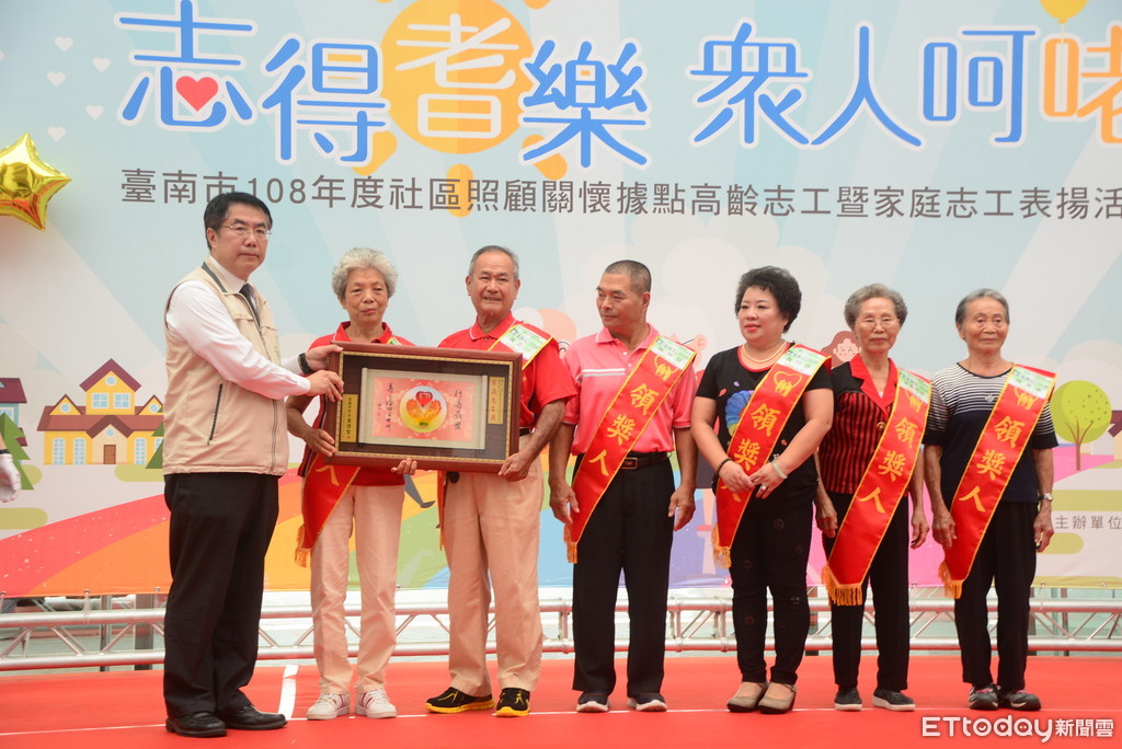 台南市政府9月9日於台南市永華市政中心2樓中庭,舉行「志得耆樂,眾人呵咾─台南市2019年度社區照顧關懷據點高齡志工暨家庭志工表揚活動」,由市長黃偉哲頒發獎狀及獎牌給154位高齡志工及6組志工家庭,藉此感謝並肯定志工為社區的無私付出。