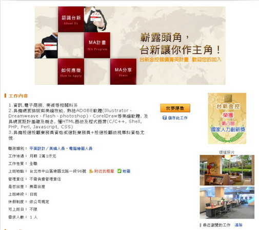 15日又有民眾爆料,台新金控在人力銀行網站上徵求「熟悉Adobe Illustrator、Dreamweave(拼錯,少個R)、Flash,以及CorelDraw等軟體,同時懂html、C/C++、Shell、PHP、Perl、Javascript、CSS等程式語言,最好具備投信業務員資格」的人才,但居然只給出21K的薪資;有民眾看不下去,在分享這則資訊時表示:「這樣的條件,我出兩倍以上,履歷請私訊我。」