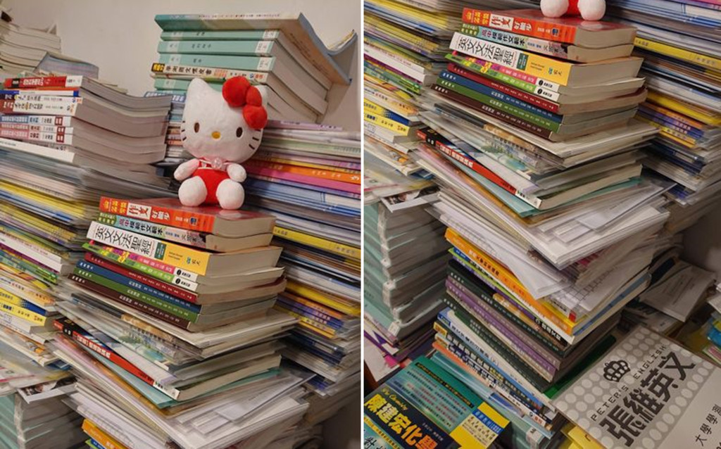 有些考生為了進入心目中理想科系,不惜再花1年時間苦讀來重考,不過,一名女網友透露,她為了考上成功大學牙醫系已經重考了12年,明年是最後一次參加學測了,她PO出這十幾年來累積的海量書籍,放眼望去有各式各樣的英文、化學、作文等等教科書,看起來根本是座高低起伏的「書山」,而且這些還只是冰山一角,其他十分之九的書多到根本無法入鏡,驚人數量讓網友全目瞪口呆。