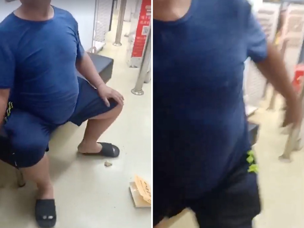 ▲台中男子在賣場無故攻擊鄰座女子,並伸手打落對方手機。(圖/翻攝自爆料公社,下同)