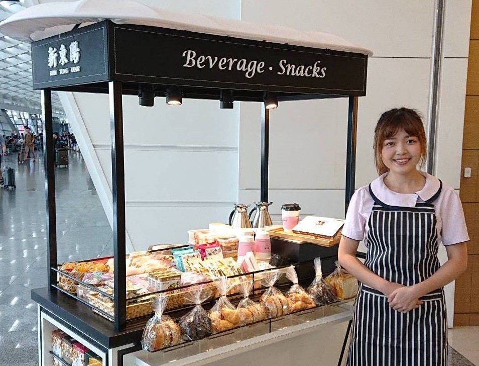 新東陽表示,觀察到接機民眾及入境旅客的動線,通常較少再走到美食廣場用餐,為了提供更全面的服務,特別推出行動餐車,並於第一航廈一樓入境大廳以定點或走動式提供販售服務。
