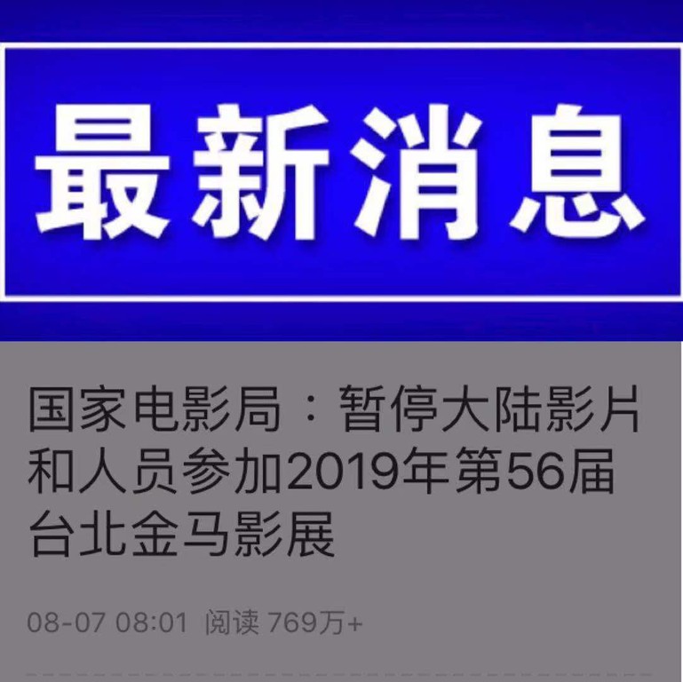 今年8月,大陸國家電影局透過「中國電影報」官方微博,宣布「暫停大陸影片和人員參加2019年第56屆臺北金馬影展」。巧合的是,今年大陸金雞百花獎選在11月23日舉行,和金馬獎同一天。