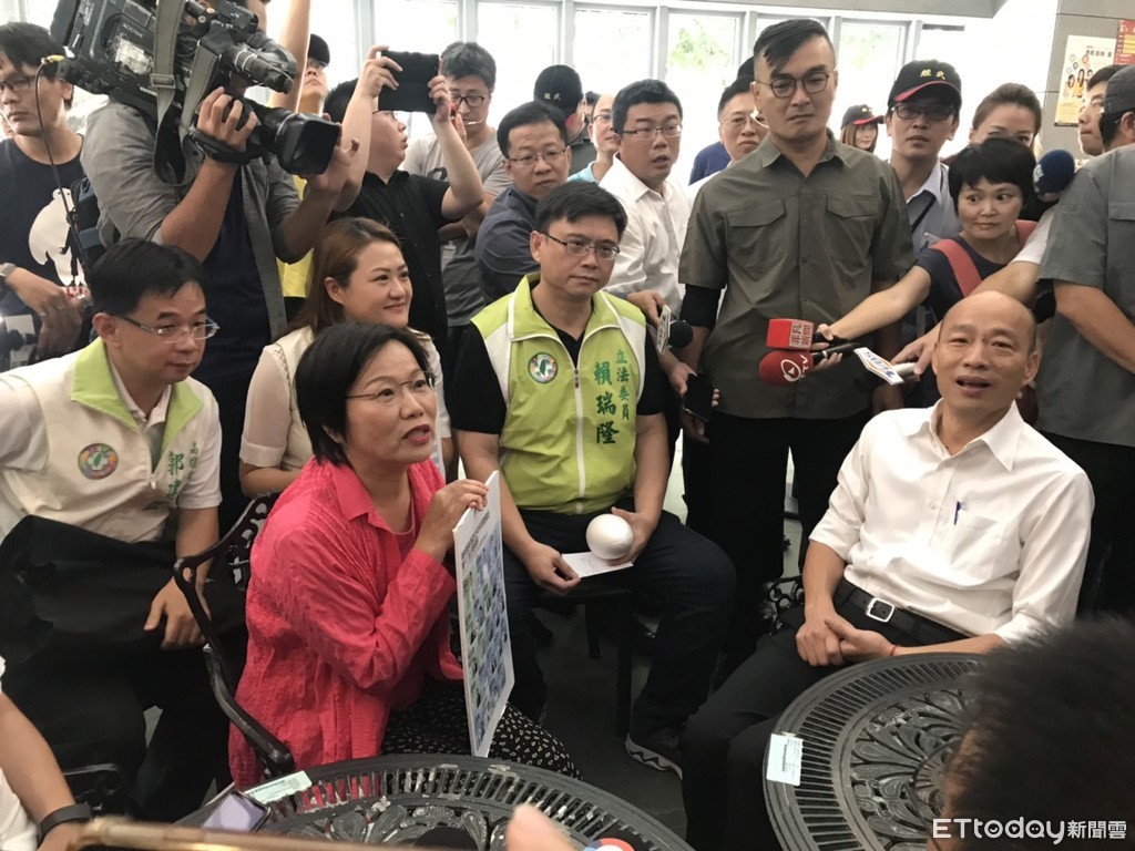 數名高雄民進黨籍立委、市議員11日一大早前往市政府召開記者會狂酸韓國瑜「施政滿意度最後一名」,開到一半「本尊」卻突然現身邀請所有的陳情抗議民代「喝咖啡」,韓國瑜表示,他是開大門走大路的人,絕不躲藏。
