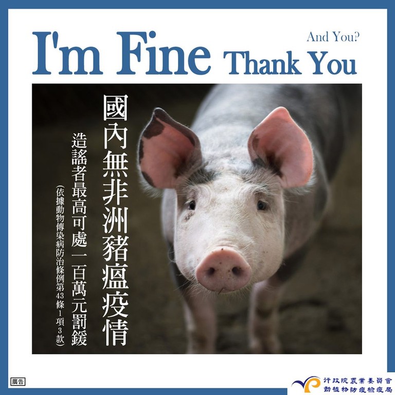 非洲豬瘟疫情在大陸等國嚴重擴散,防檢局表示,近日有人在論壇上說南部爆發非洲豬瘟導致豬價大漲,必須鄭重的告訴各位,目前國內並未爆發非洲豬瘟疫情,對於這種惡意謠言千萬不要信,如有違法散播不實疫情的嫌疑者,依動傳條例第43條「散布有關動物傳染病流行疫情之謠言或傳播不實流行疫情消息」最重可罰100萬元。