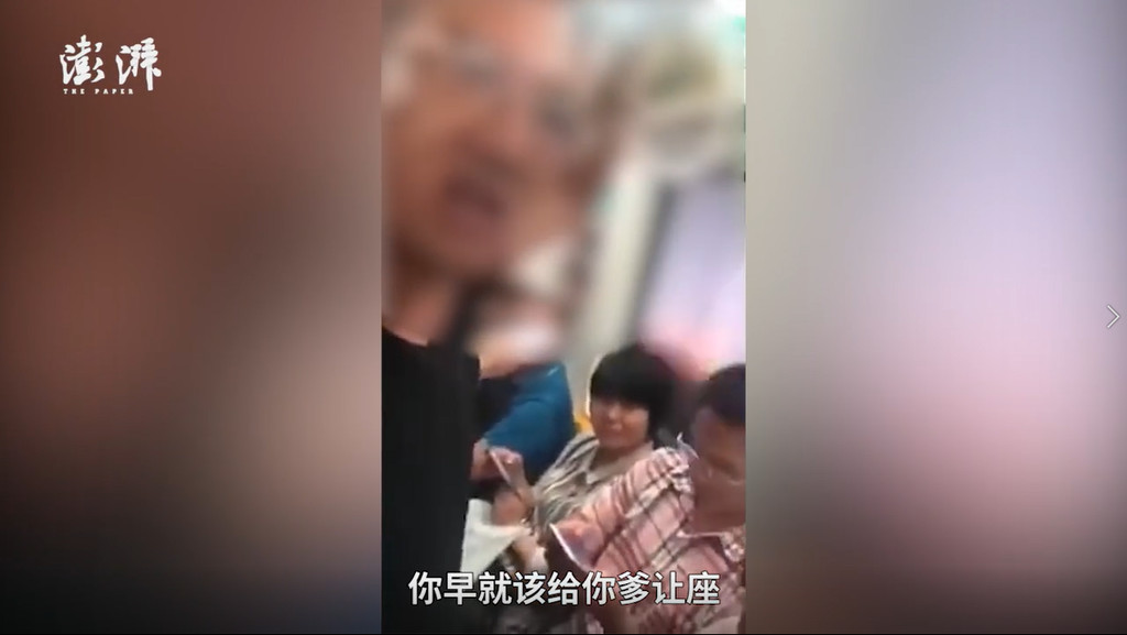 北京地鐵於11日早上尖峰時段,有一名黑衣男子以自己年紀大為由,要求其他乘客為他讓座,甚至言詞辱罵把座位讓給他的人,反覆直呼「應該給你爹讓座。」現場其他人詢問其年齡時,已經得到位子並坐下的男子則回答,「我反正比你爹大。」全程都被拍了下來。