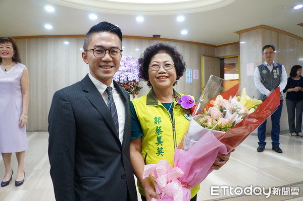 ▲郭蔡美英與兒子郭裕信,於市議會開心合影。(圖/記者楊淑媛攝)