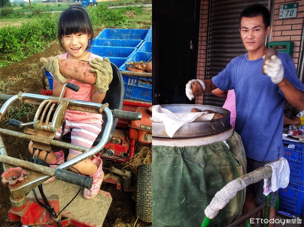 ▲ 青農蔡漢昌(右)、女兒(左)全家投入番薯囝仔炕地瓜。(圖/新北市農業局提供,下同)