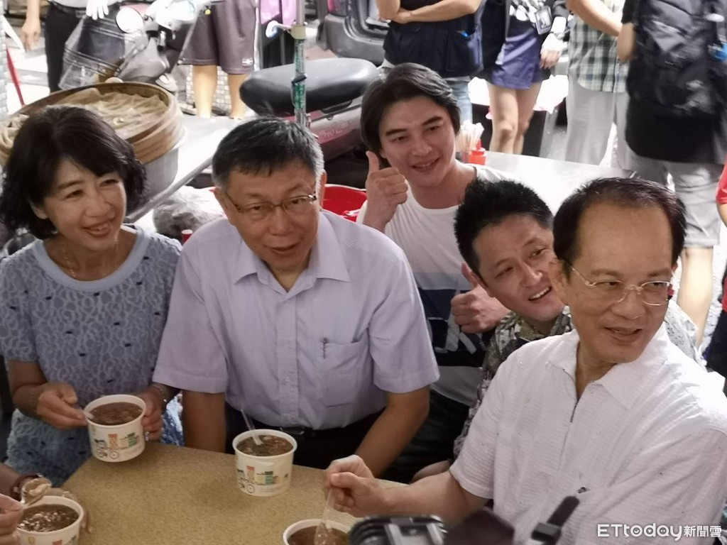 柯文哲跟陳佩琪在三民市場吃麵線羹,高雄天氣很熱又吃熱的東西,所以讓柯文哲直喊熱,還不時擦汗,但也沒停下跟旁邊的人分享,高鐵一日生活圈的便利、快速,就在這個時候,同桌吃飯的一名具有新住民二代身份的何景榮,也是打算台參加北市立委參選人就接口說,「一日生活圈對高雄市長韓國瑜常跑到台北,不知道要幹嘛,上班時間」。